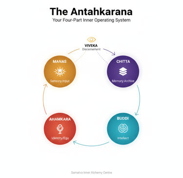 In this frozen moment, you are witnessing the four parts of your internal instrument (The Antahkarana) running its default sequence.
